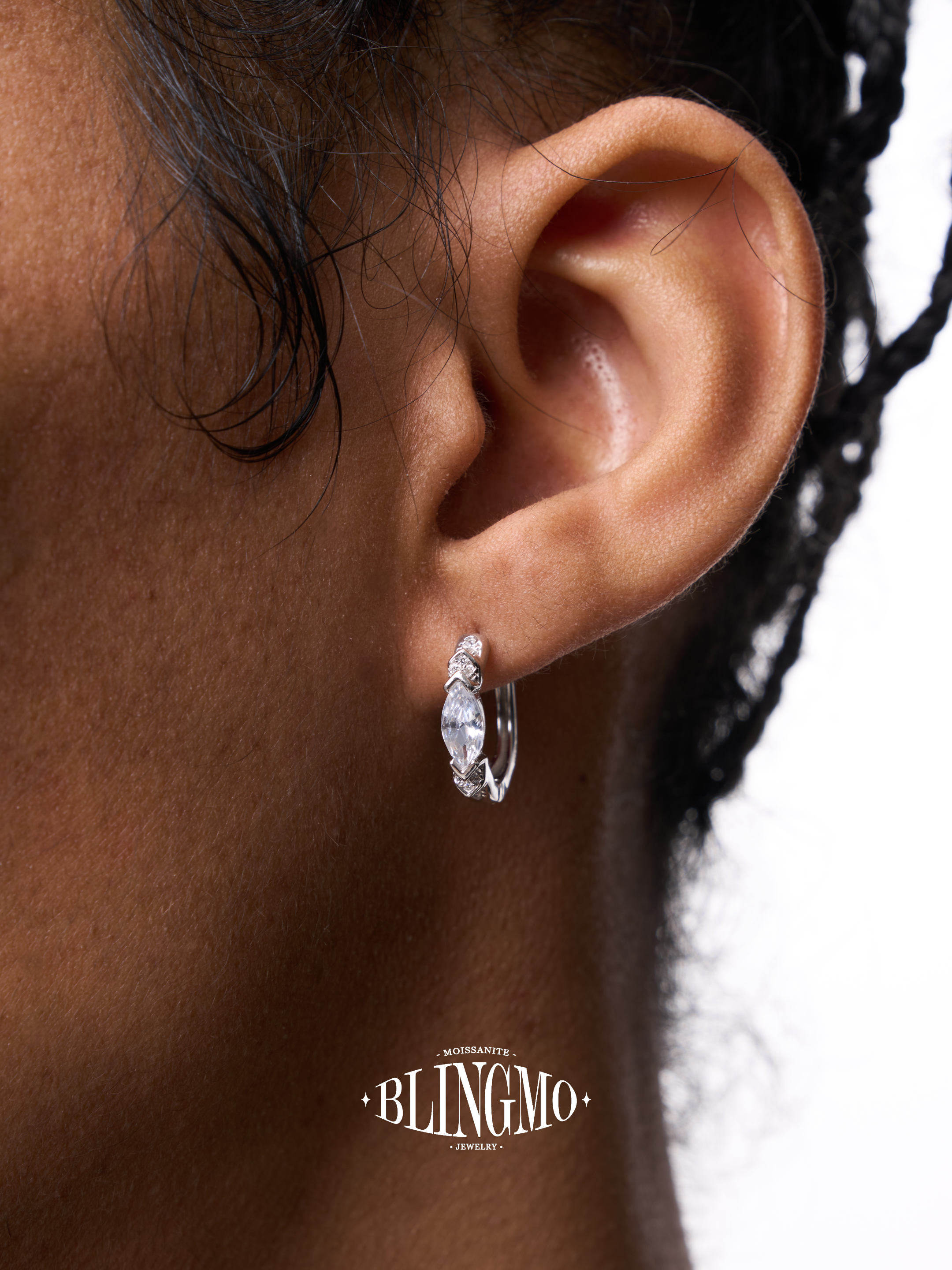 Blingmo S999 Sterling Silver Eye of Horus Earrings for Men, Marquise-Cut Green Diamond Hoop Earrings, Black Stud Earrings for Men and Women