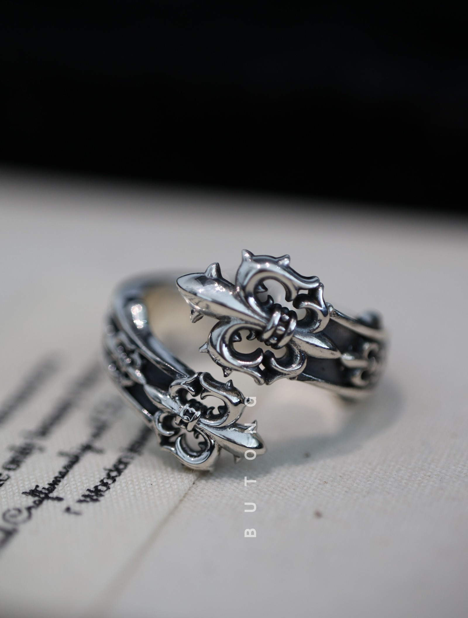 Different Silversmiths European and American Retro 925 Sterling Silver Double Anchor Interlocking Open Ring Hip-Hop Personality Couple Silver Ring