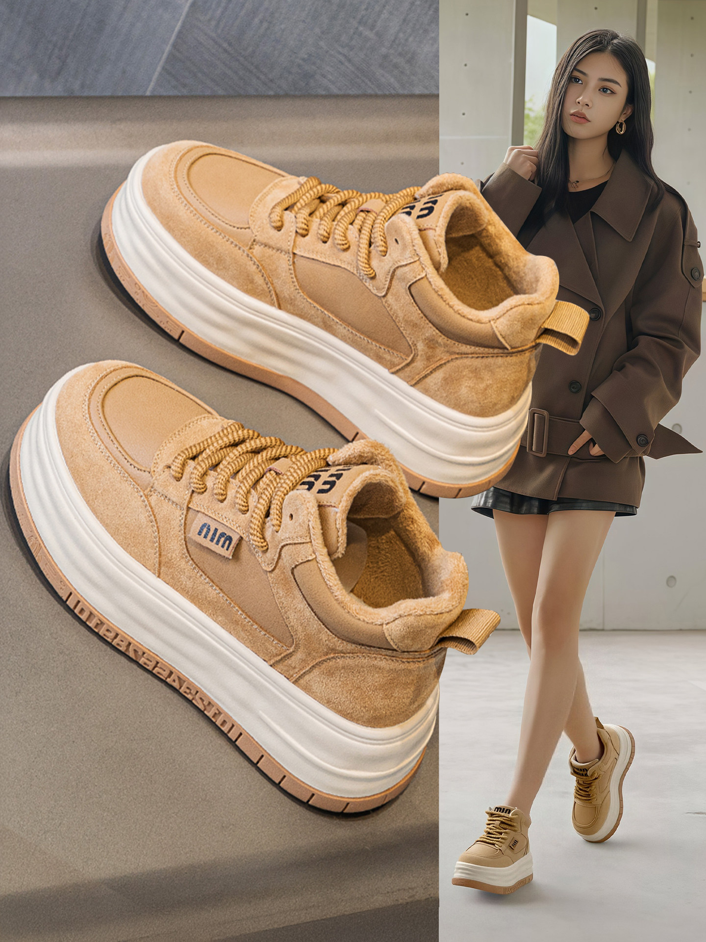Hong Kong Maillard Genuine Leather Round-Toe High-Top Shoes for Women 2025 Winter New Versatile Fleece-Lined Warm Thick-Soled Casual Sneakers