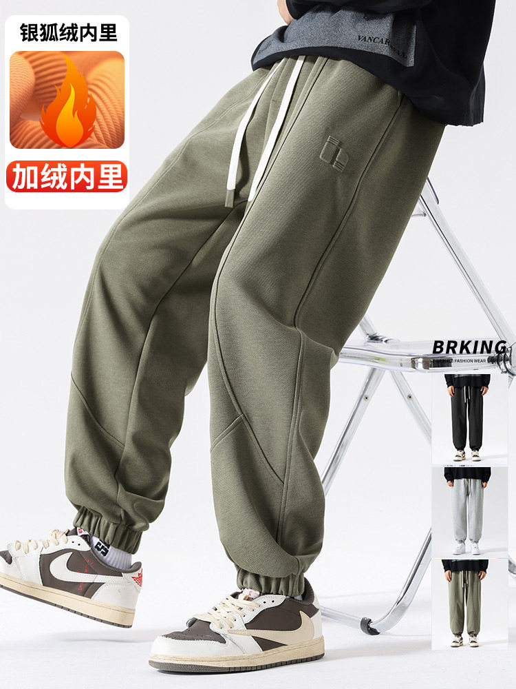 Woodsoon Men's Sweatpants Spring and Autumn New Style Workwear Jogger Pants Winter Fleece-Lined Heavy Casual Men's Pants