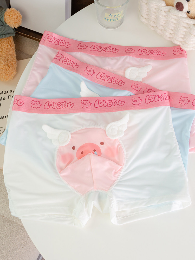 Piggy Underwear~ Men's Cartoon Cute 2025 Ice Silk Couple Boxer Briefs Pink Quirky Boxer Briefs Gift for Boyfriend