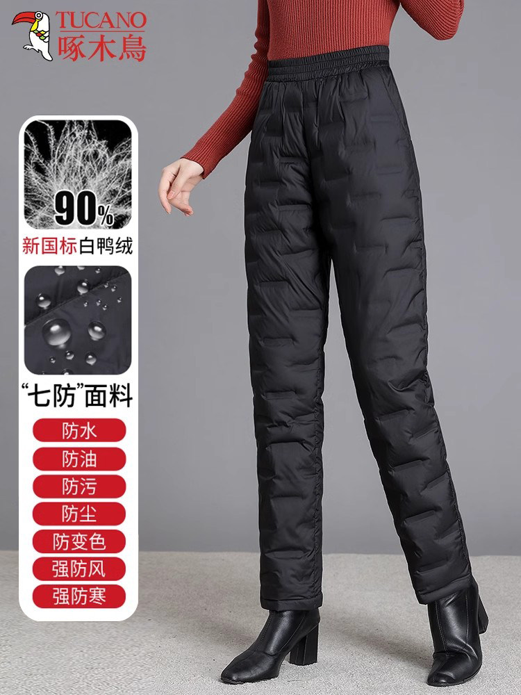 Woodpecker Brand Middle-Aged and Elderly Women's down Pants for Outdoor Wear, Winter 2025 New Style, High-Waisted, Loose-Fitting, Thickened, Straight-Leg Cotton Pants for Mothers