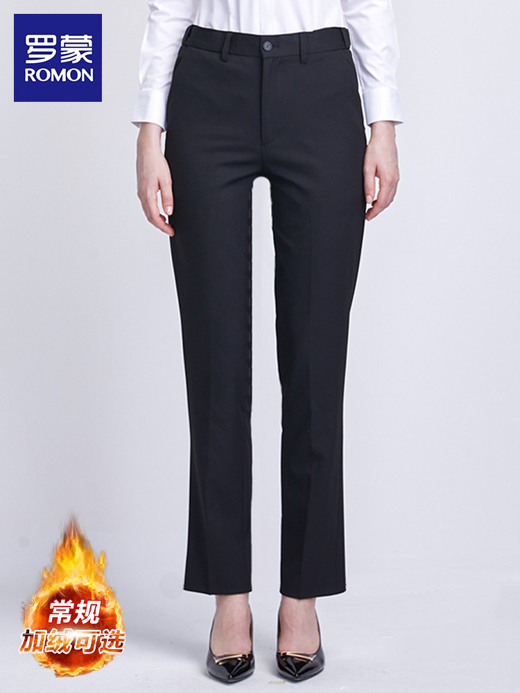 【Warm Silver Fox Fleece】Romon Autumn and Winter Fleece-Lined Women's Professional Trousers Black Straight-Leg Work Pants Navy Blue