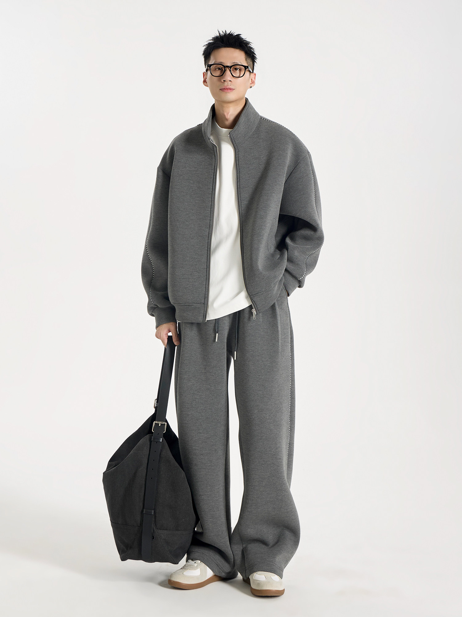 E77『Kongyu』Autumn and Winter Double-Layer Space Cotton Stand-Up Collar Sweatshirt Jacket and Sweatpants Casual Sports Couple Set