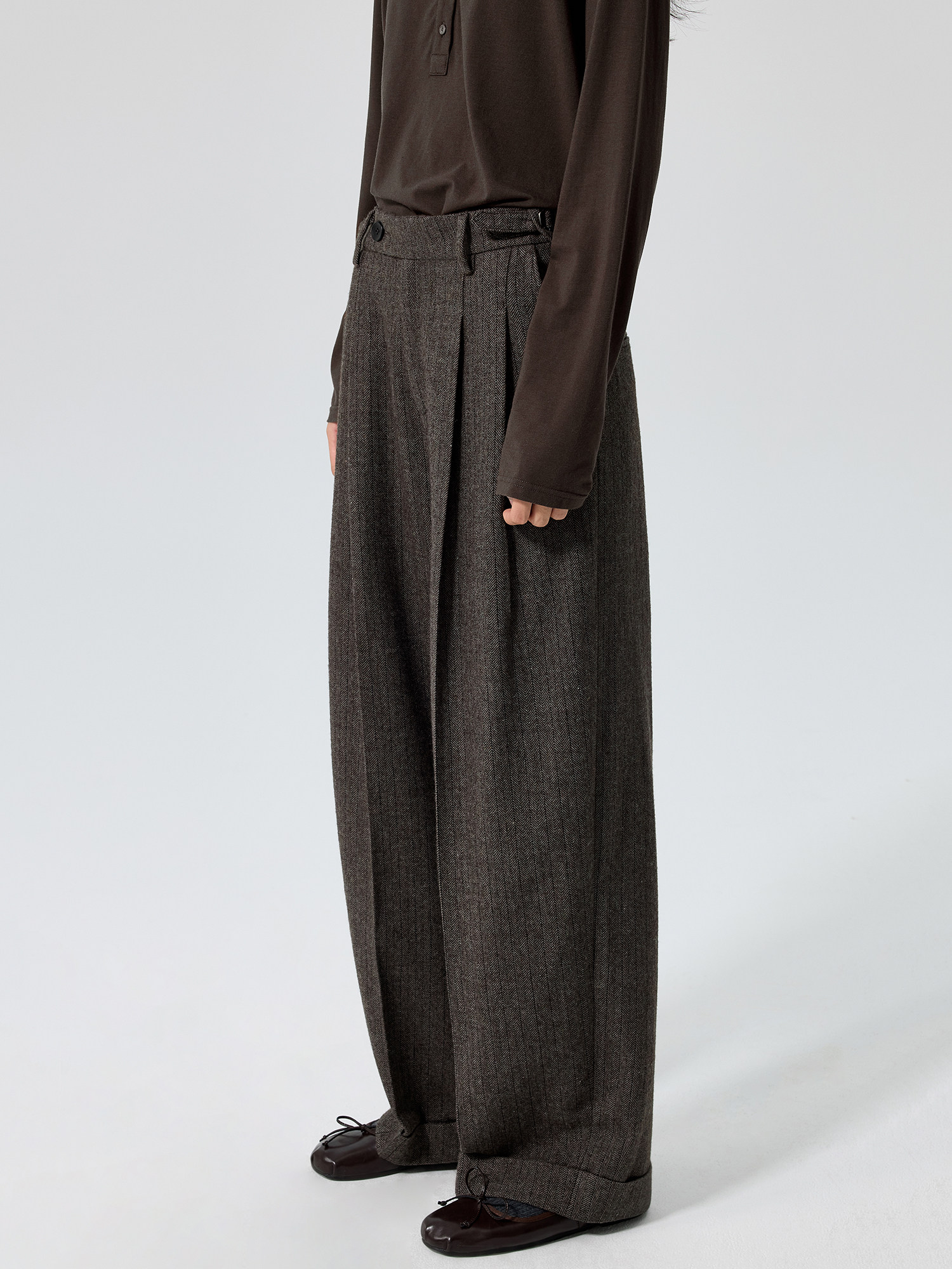[Parrot Pear Recommendation] Abwear Original Thickened Woolen Suit Pants for Women 2024 Autumn and Winter High-Waisted Wide-Leg Pants