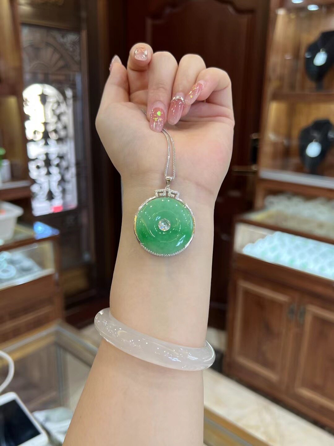 Sterling Silver S925 Silver Inlaid with Jade Green Ruyi Peace Pendant Necklace for Women, Fashionable Clavicle Chain, Gift for Girlfriend