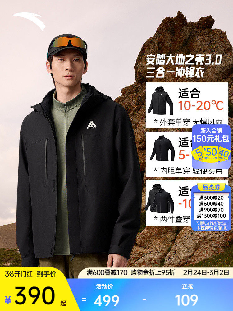 [Classic 2.0] Pelliot Mountain Jacket Women's 3-in-1 Outdoor Windproof Waterproof Mountaineering Ski Jacket Men's