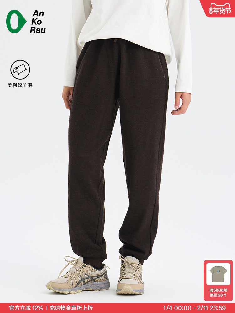 Women's New Winter Product 19.5 Micron Merino Wool Warm Loose Tapered Pants | Ankorau an Gao Ruo