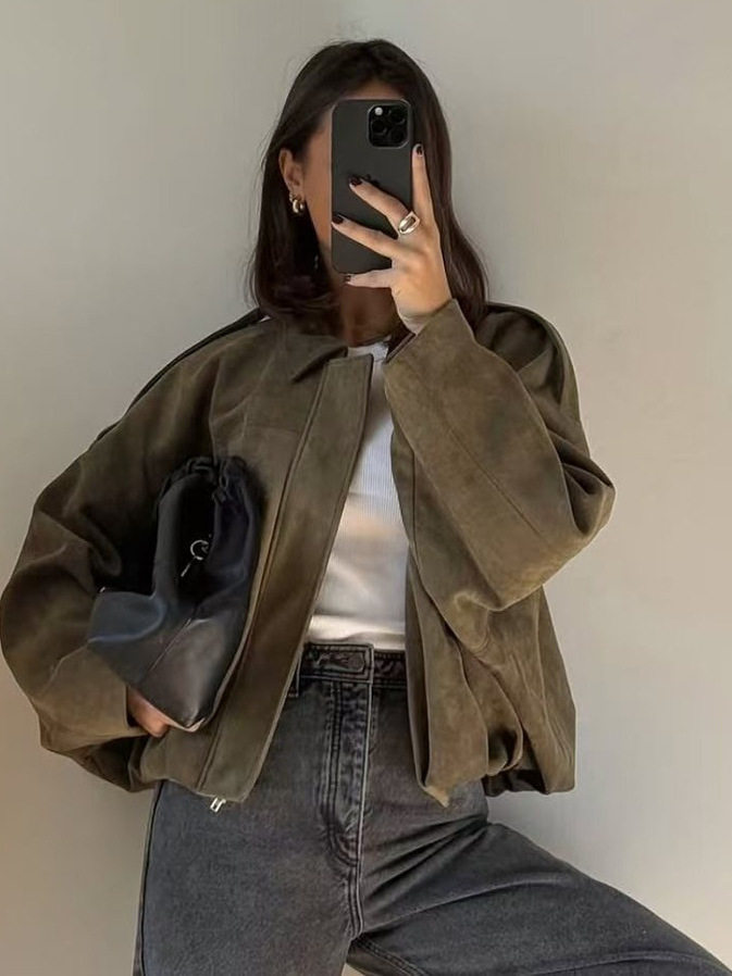 Wmxz Spring New Women's Clothing Batwing Sleeve Lapel Suede Texture Effect Bomber Jacket 4344155
