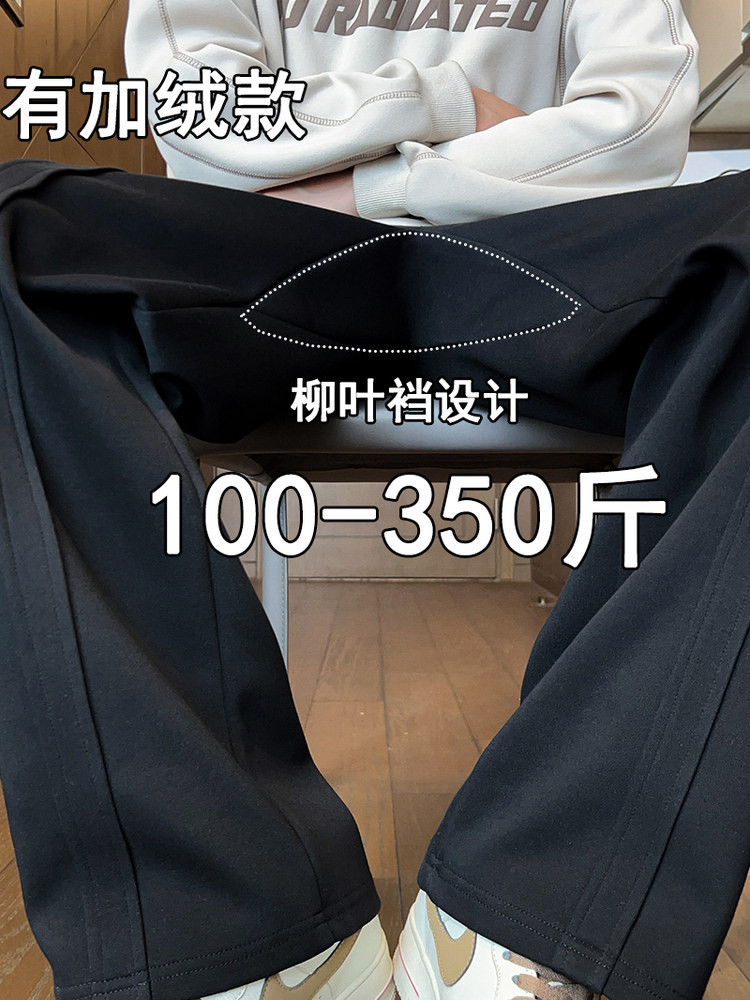 Men's Casual Pants Plus Size, Extra Large, Heavy-Duty, Loose Straight-Leg Sweatpants, Spring, Autumn, and Winter, Fleece-Lined, Leaf-Shaped Crotch Long Pants