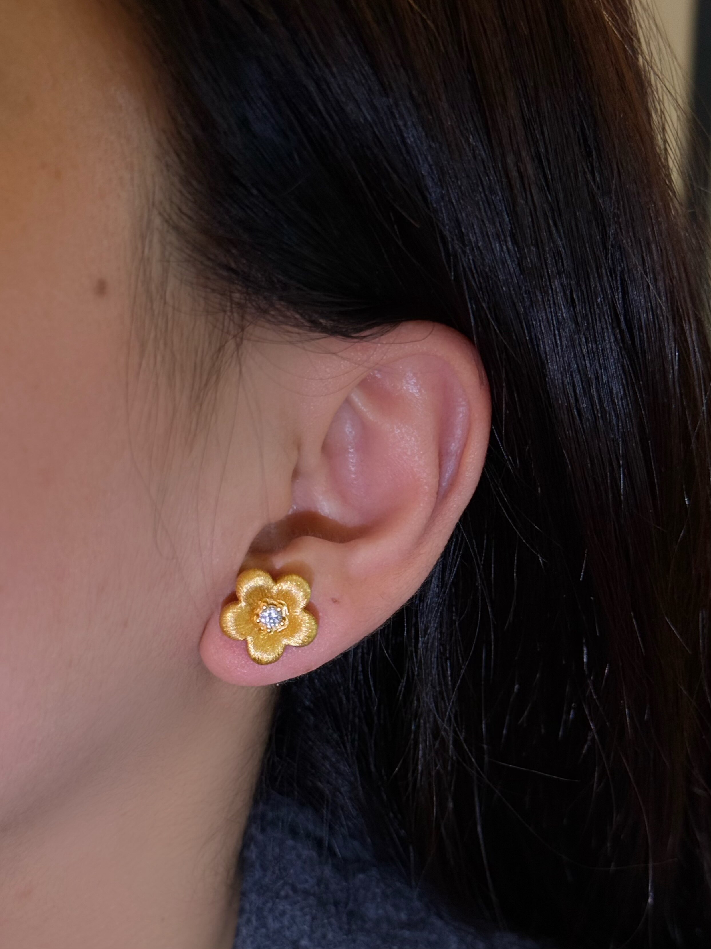 Ledi Italy【Brushed Small Gold Flower】S925 Silver Gold-Plated Light Luxury Niche Design Ring Set for Women
