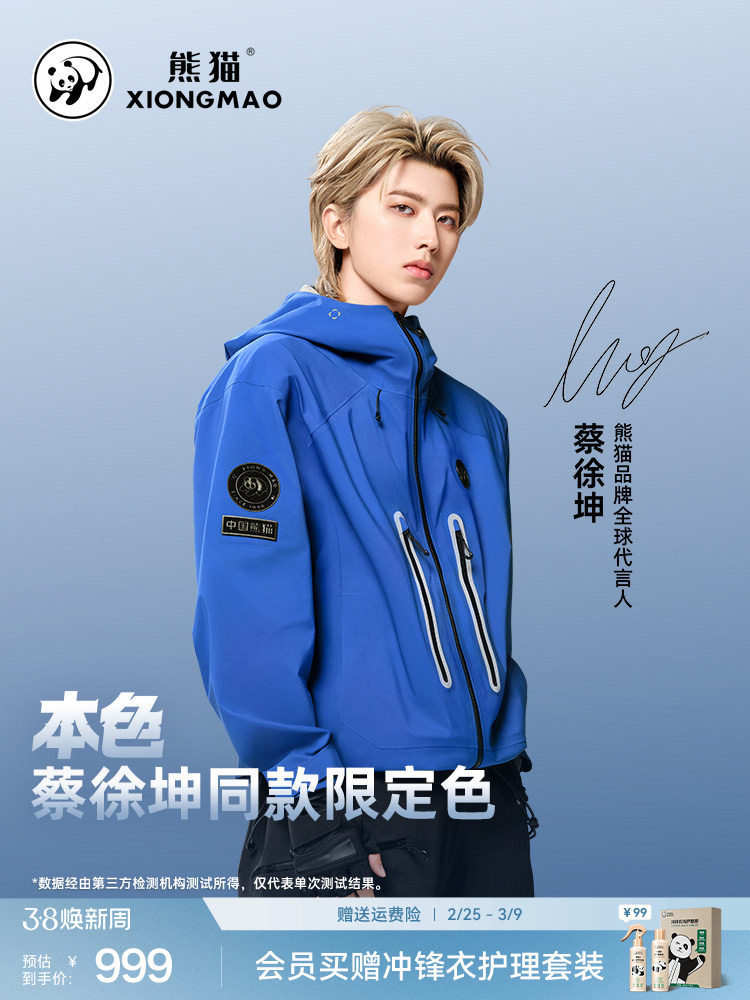 【Cai Xukun's Original Style】Chinese Panda Raincoat, Windproof 3L Outdoor Mountaineering Jacket, Three-Proof Coat