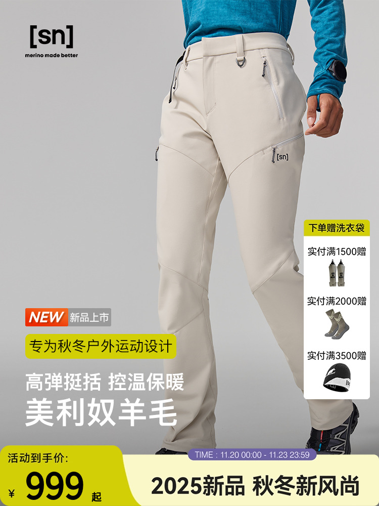 【New Product】Sn Merino Wool Softshell Pants for Women, Hiking, Commuting, Warm, Casual Long Pants for Men, Sheepskin Series