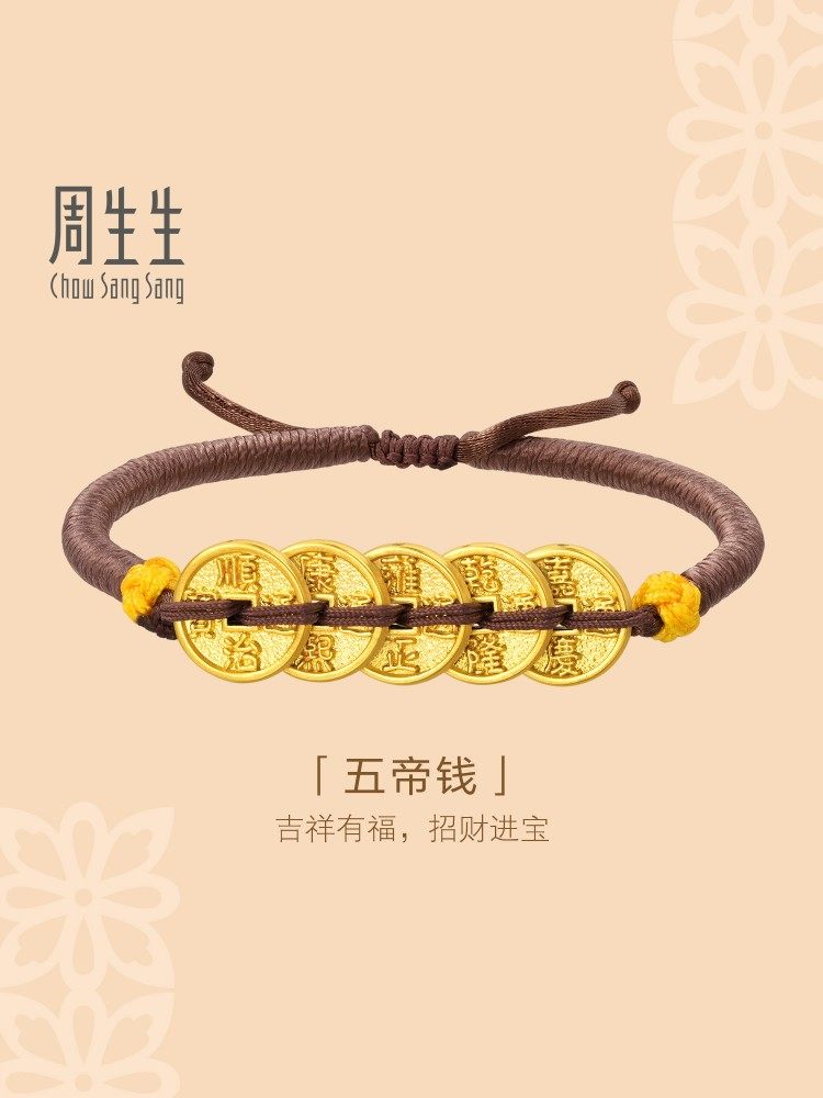 Chow Sang Sang Gold Five Emperors Coin Bracelet Cultural Blessing Pure Gold Braided Bracelet 92651B Price