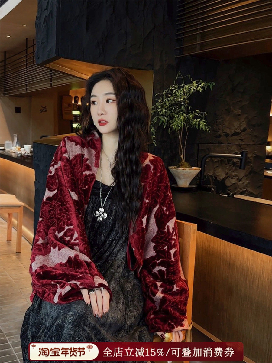 Sanji Black Flower [Magnolia] New Chinese Style Shearling Jacket for Women, Autumn/Winter 2024 New Popular Style, This Year's Trendy Shearling
