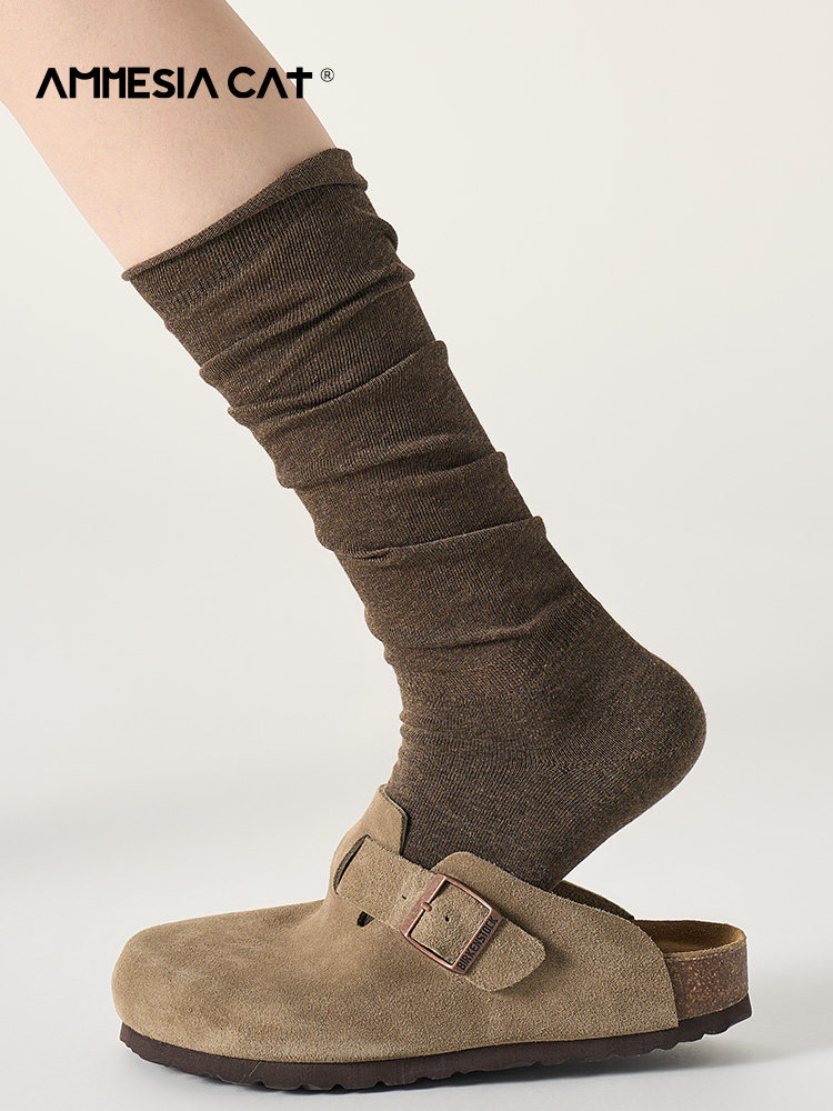 Melard Coffee-Colored Slouch Socks for Women, Long Socks for Autumn and Winter, Brown Pure Cotton Calf Socks to Match Boots, Vintage Mid-Calf Socks