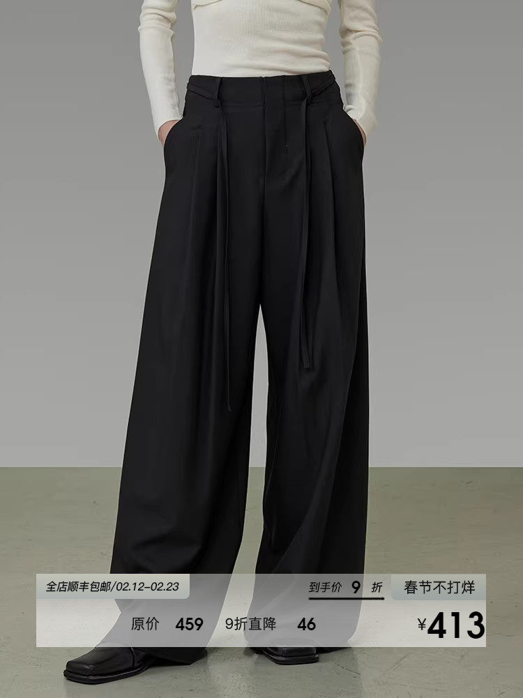 Inknots American Retro Deconstructed Drape Fleece-Lined Curved Hem Casual Sweatpants Unisex Loose Wide-Leg Straight Pants Trendy