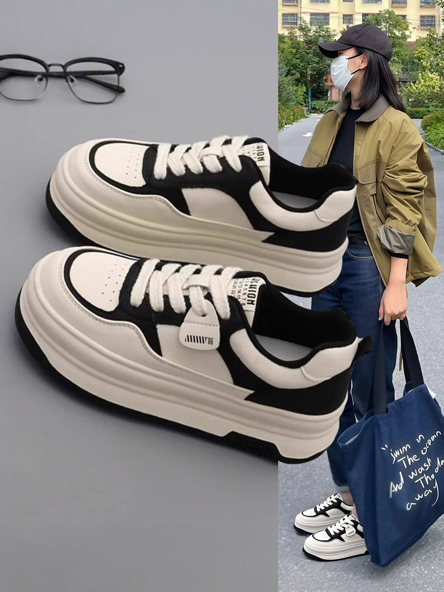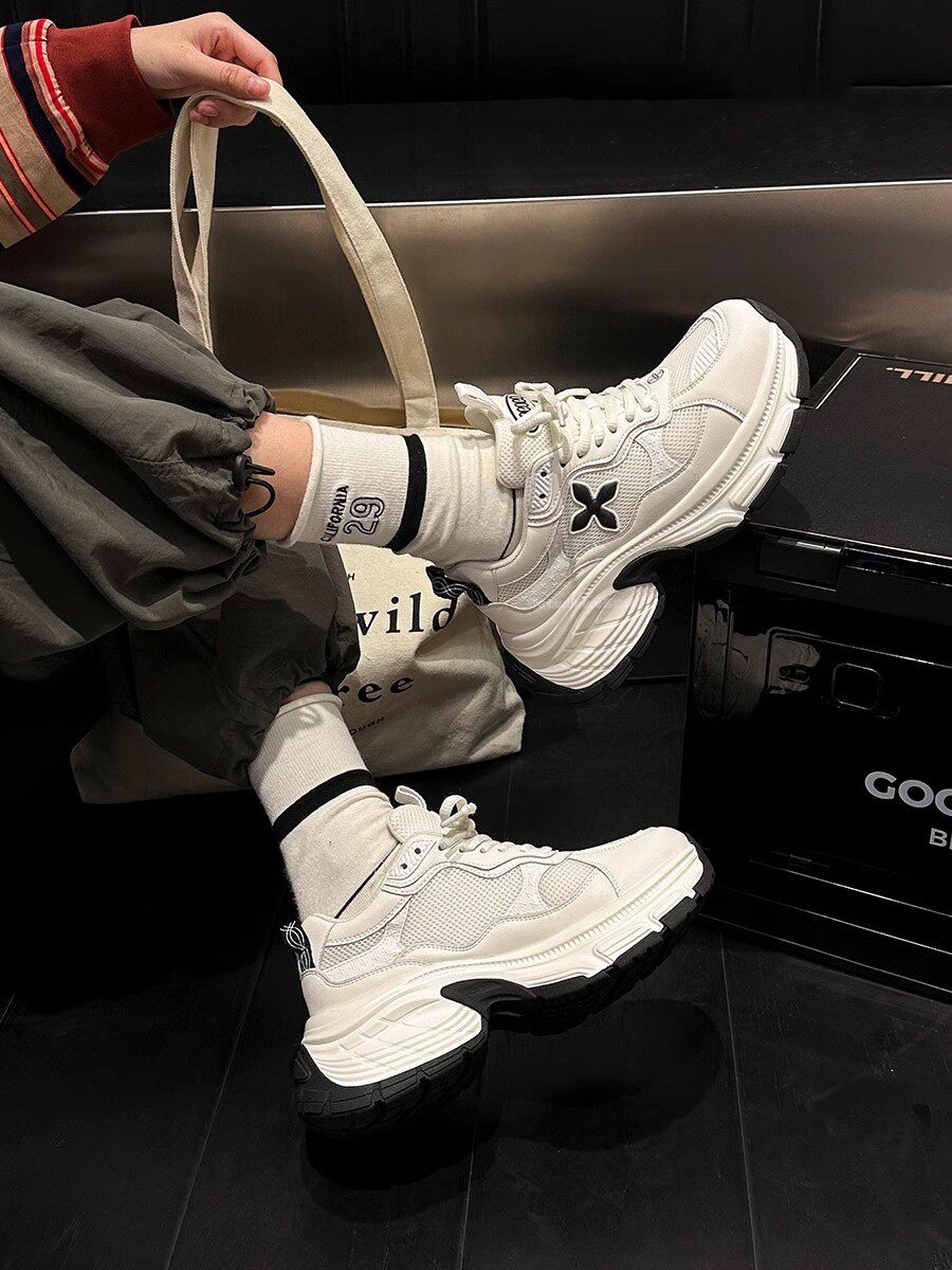 Hong Kong Thick-Soled High-Top Shoes for Women, Spring and Autumn Style, Genuine Leather Casual Platform Shoes, Height-Increasing, Versatile, 2026 New Women's Shoes
