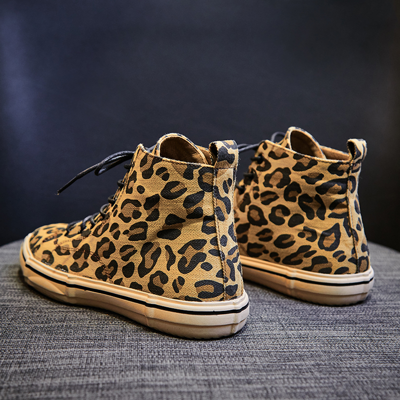 Hong Kong Leopard Print High-Top Canvas Shoes for Women 2025 Spring and Autumn New Versatile Short Boots Single Shoes ins Trendy Sneakers