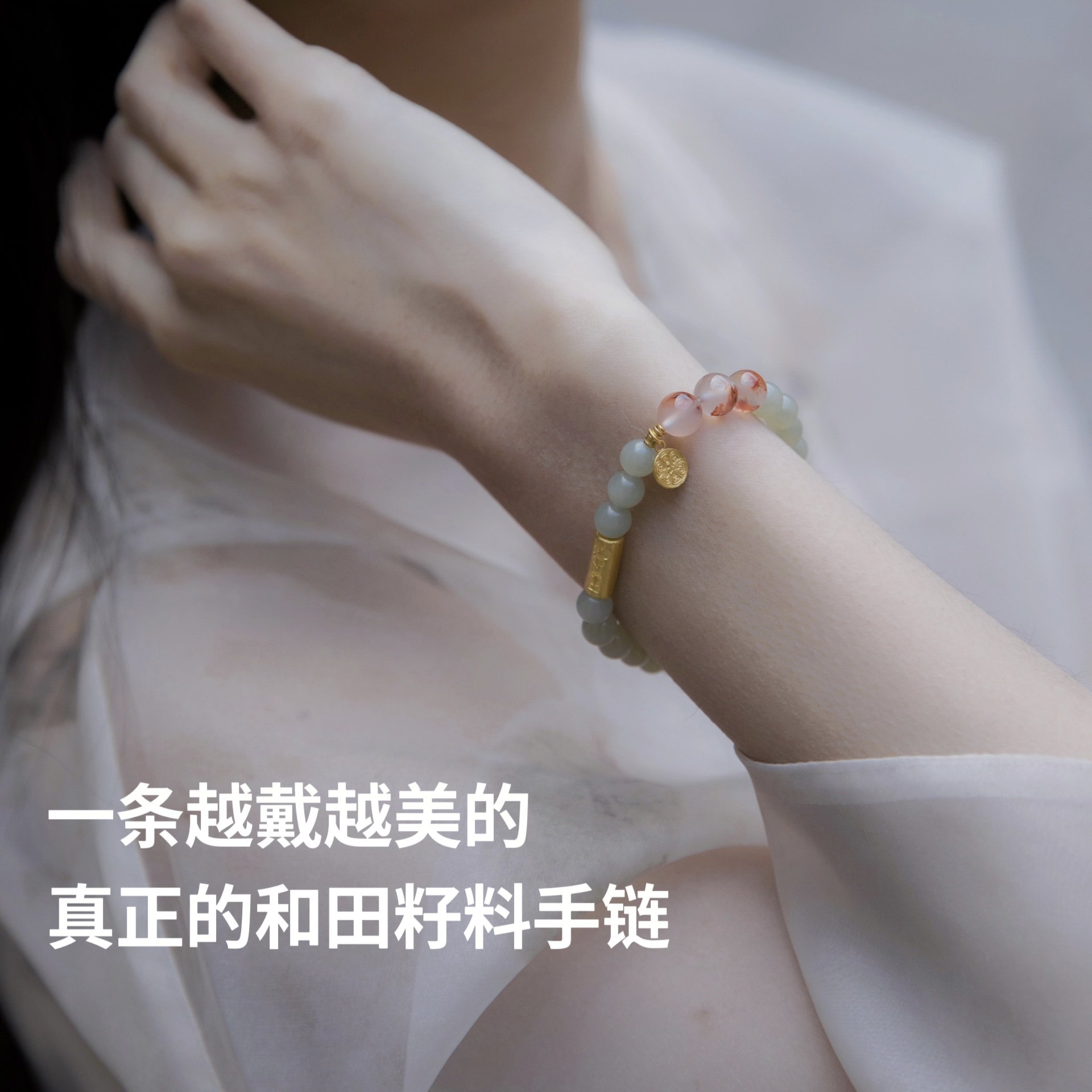 Liu Fu Jewelry Two Generations of Joy Lotus Pod Lotus Gold and Hetian Jade Bracelet for Women Daily Pure Gold Bracelet A01A0015Ds