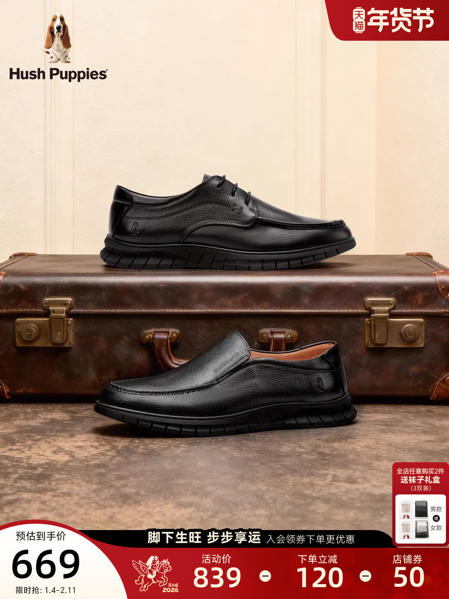 Hush Puppies Casual Leather Shoes, Spring and Autumn Style, Business Formal Genuine Leather Men's Shoes, Classic Comfortable Slip-On Loafers