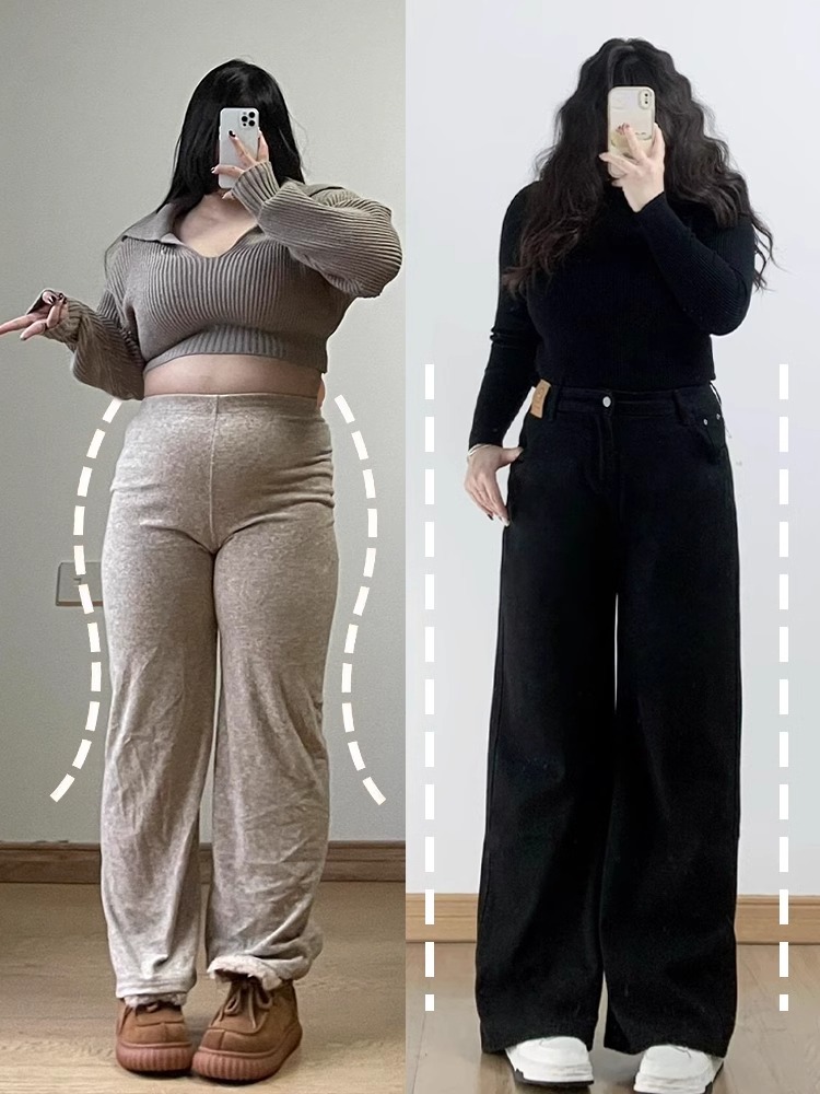 Pear-Shaped Body American-Style Straight-Leg Jeans for Women, Autumn and Winter, Fleece-Lined, Plus Size, High-Waisted, Hip-Covering, Loose Wide-Leg Pants