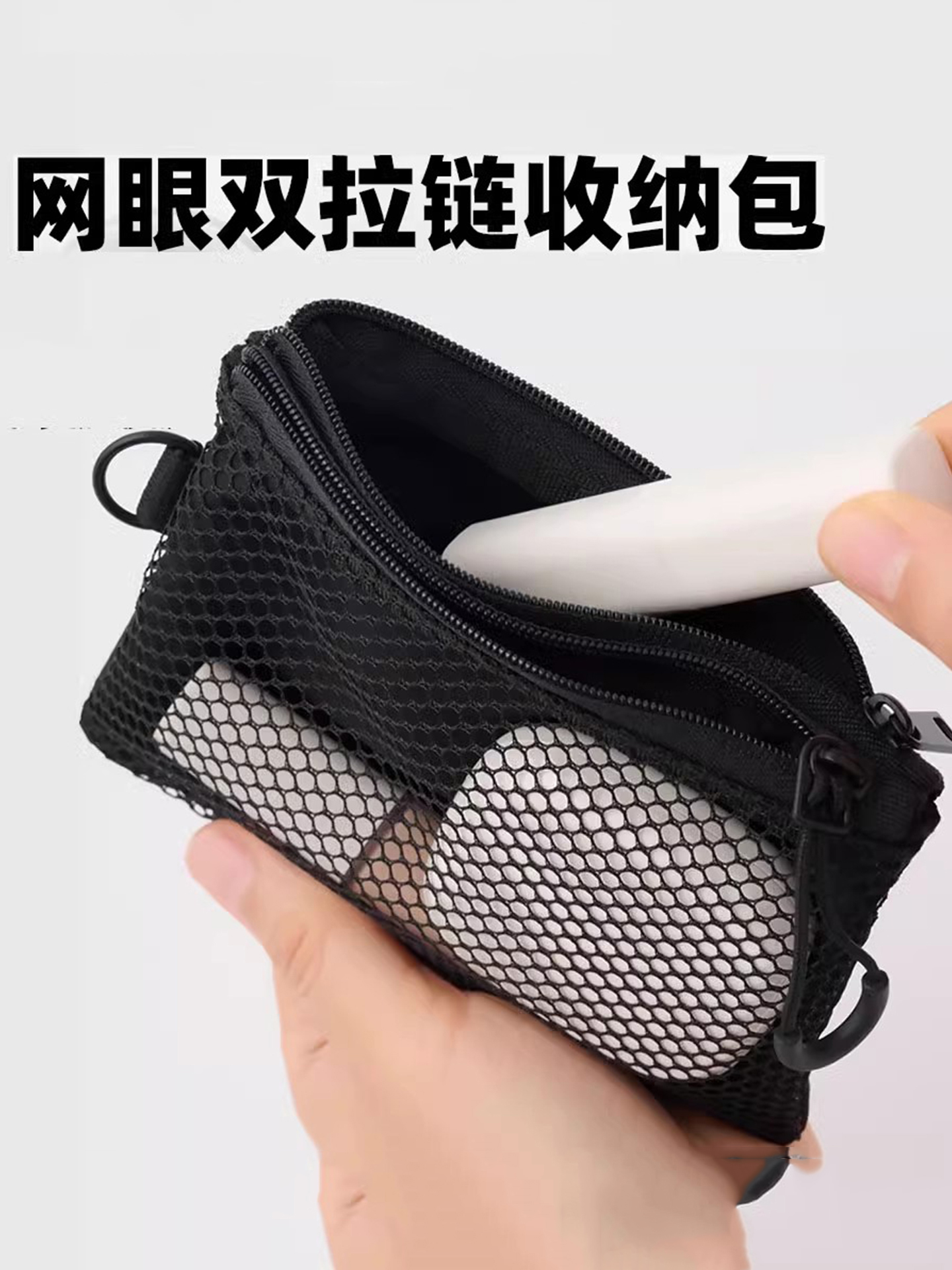 Japanese-Style Export Double Zipper Bag Mesh Phone Bag Storage Bag Mesh Pouch Minimalist Travel Small Bag Coin Purse Card Holder