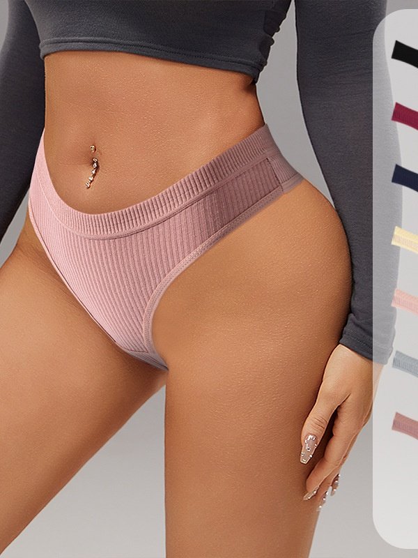 Latte Girl Seamless Low-Rise Briefs Pure Cotton Ribbed Simple Solid Color Thong Sports Fitness T-Pants