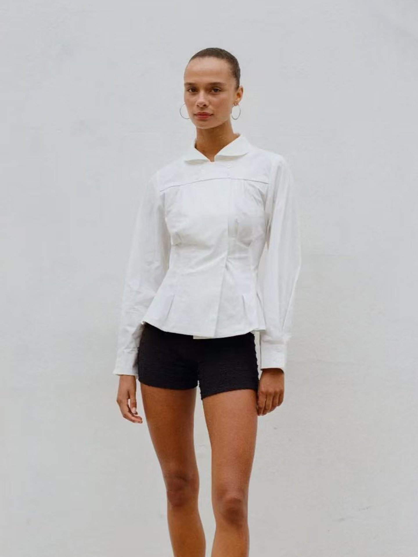 Oclin Diagonal Placket A-Line Straight Pleated Trousers with Striped Texture, Full Hemming, High-Rise Commuter Suit