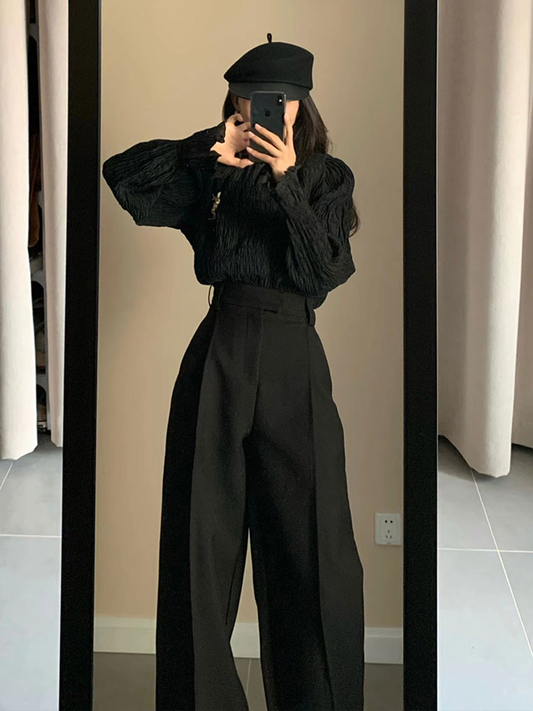 Elegant High-Waisted Straight-Leg Loose Slimming Floor-Length Wide-Leg Pants for Women, New Autumn Style with Drape Effect