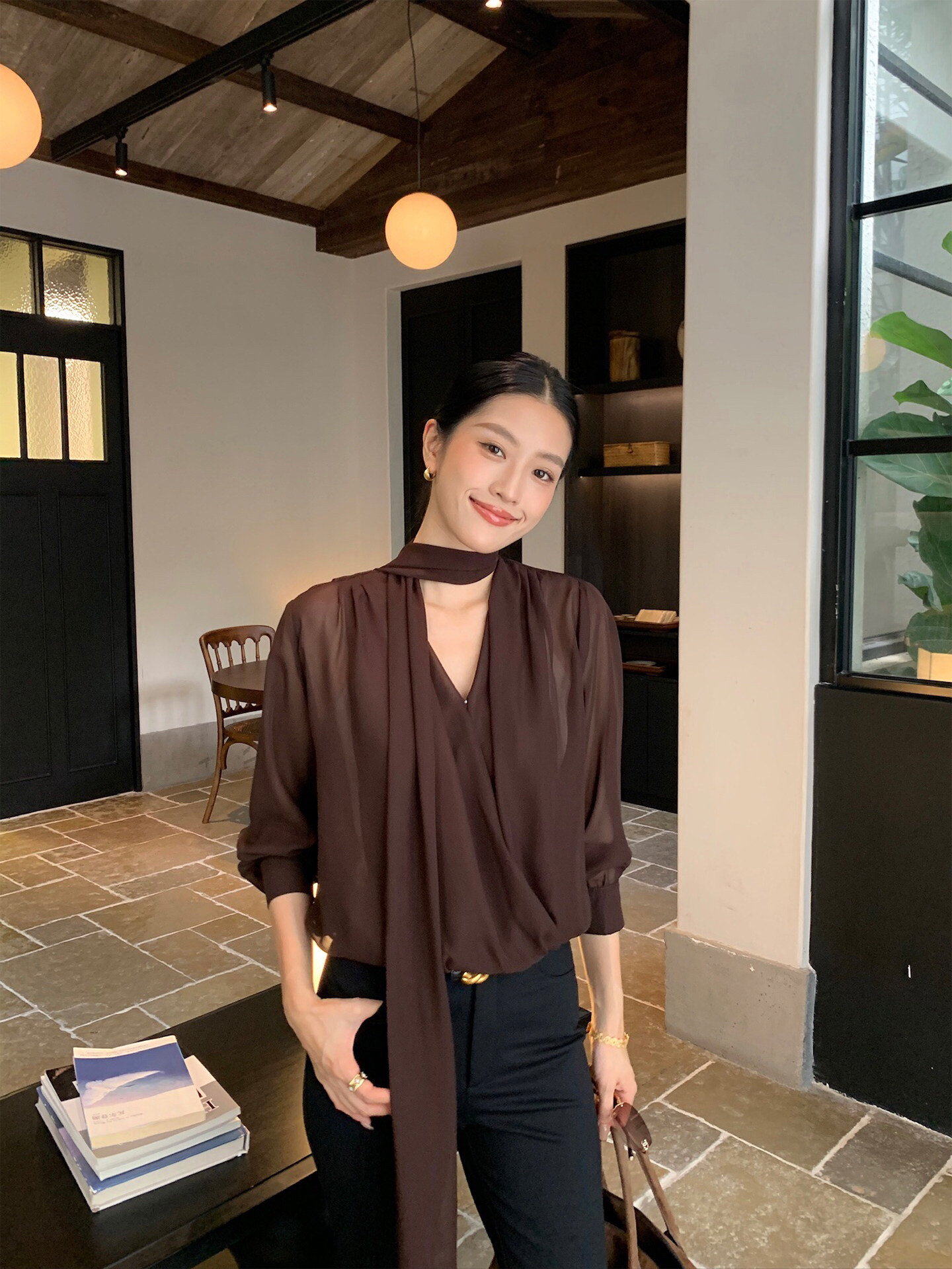 Iamjam “Red-Brown Shirt” Autumn Relaxed Loose Shirt New Casual Slimming Commuting Top for Women