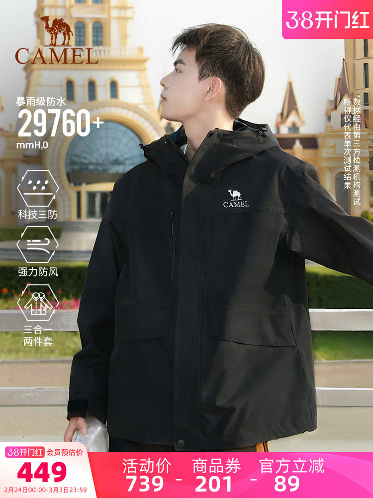 Camel Outdoor 3-in-1 Rock-Climbing Jacket for Men and Women, Windproof and Waterproof Coat for Tibet Travel, Hiking, and Mountaineering