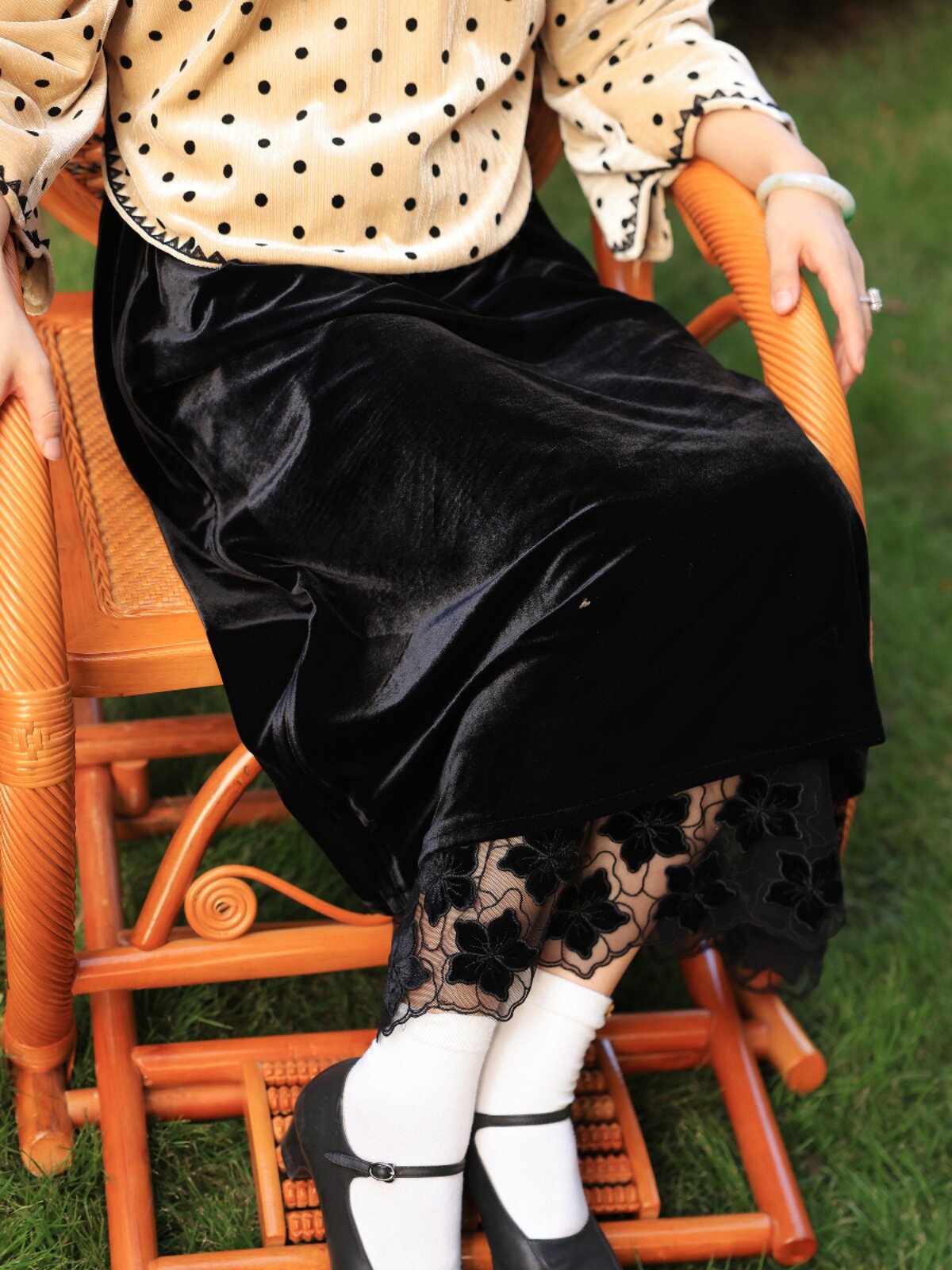 Minuet Top Ulara Retro Ladylike Autumn and Winter Mid-Length Velvet Lace Trim A-Line Skirt