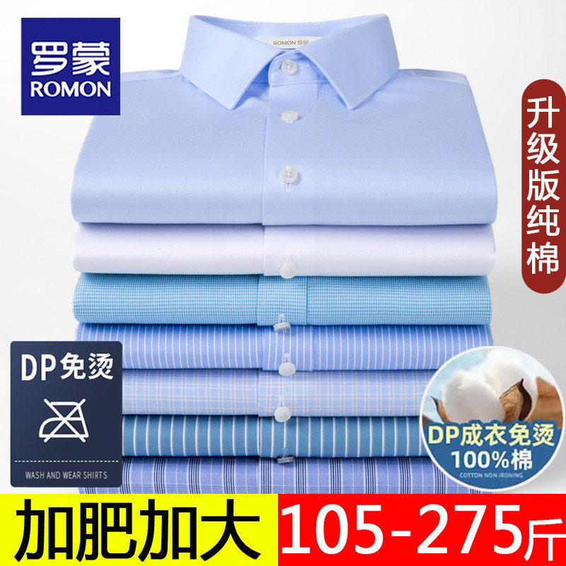 Dp Pure Cotton Non-Iron Romon Plus Size Long-Sleeve Shirt for Men, Business Casual Loose Fit, Striped Shirt for Big and Tall Men