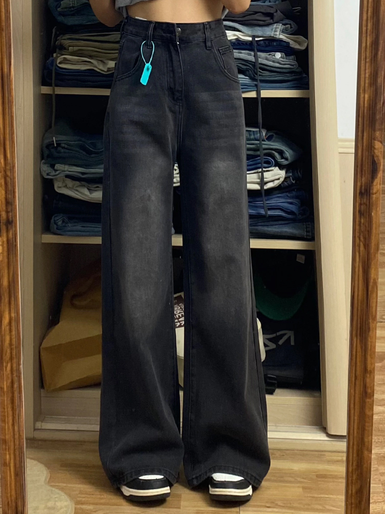 Women's Plus-Size Straight-Leg Jeans for Petite Figures, Autumn and Winter Fleece-Lined and Thickened, 2025 New Loose Wide-Leg Pants
