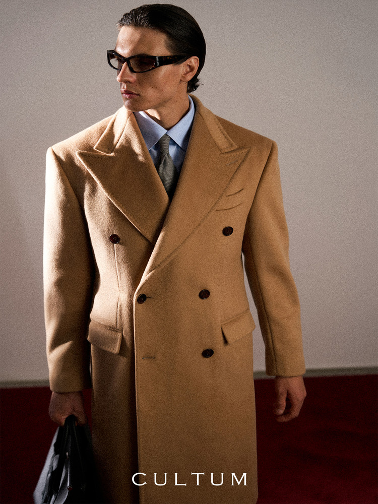【100% Wool】Cultum Autumn and Winter Coat for Men, Mid-Length, Short, Smooth Wool, High-End Double-Breasted Thickened Jacket