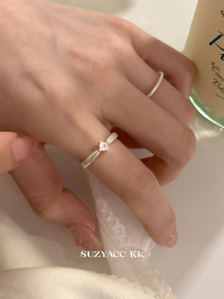 Suzyacc Kr Niche Design Square Diamond Starburst Frosted Ring Light Luxury Retro High-End Index Finger Ring for Women