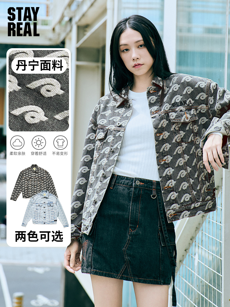 Aixin's Same Style Stayreal Trendy Brand Plan a Towards Infinity Denim Jacket Long-Sleeve Jeans Clothing for Men and Women