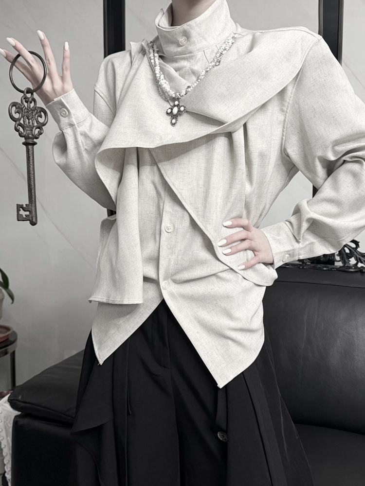 Aont【Twins Series】Vintage High-End Shirt with Irregular Patchwork and Exclusive Design, Niche Shirt