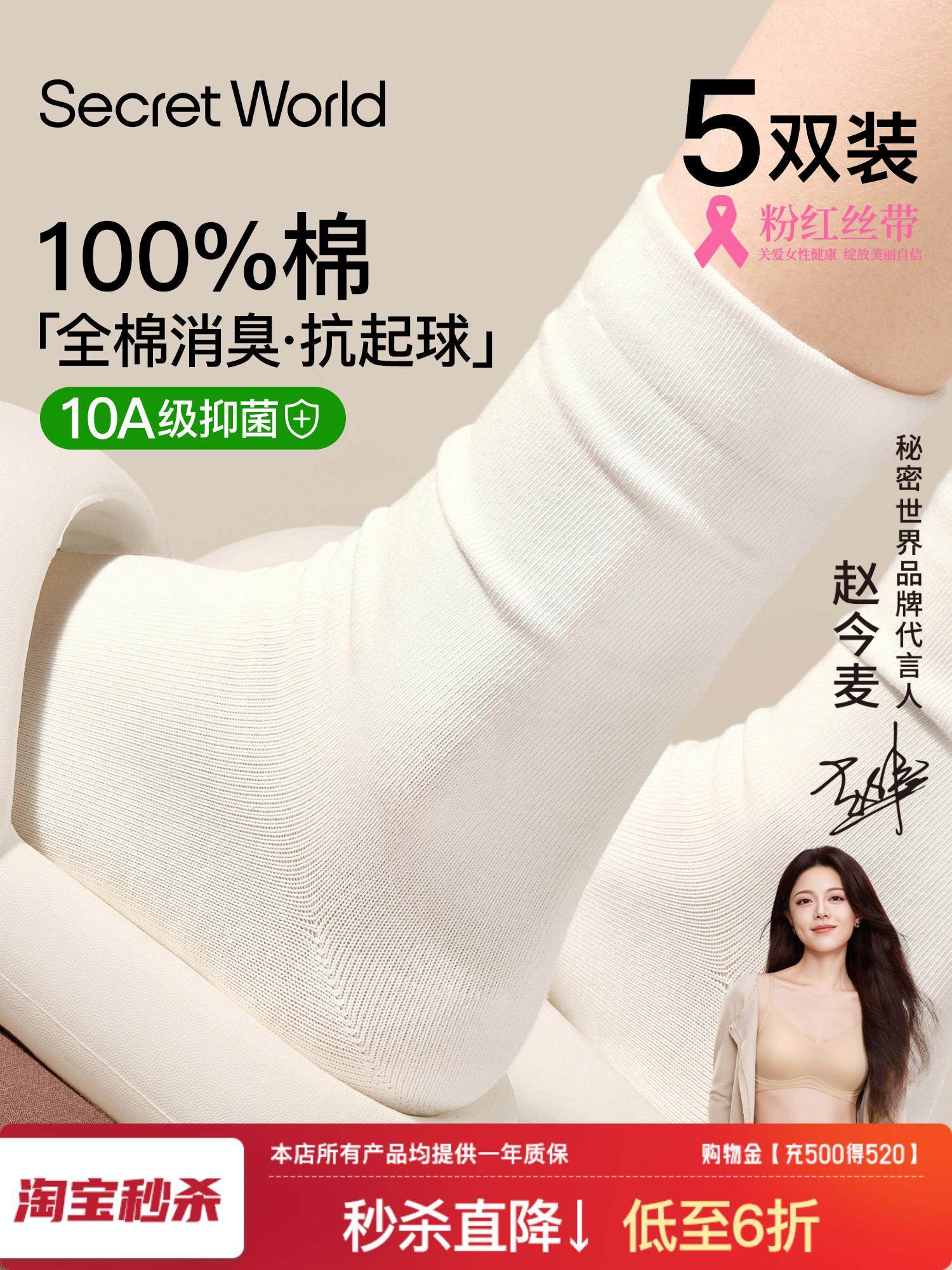 100% Cotton Socks for Women, Full Cotton Mid-Calf Socks, Thickened for Autumn and Winter, 10A Antibacterial and Deodorant, Pure Cotton White Maternity Socks