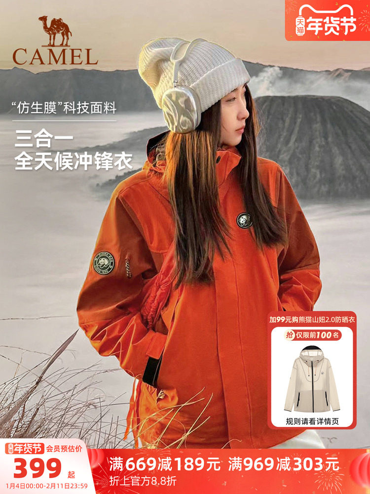 Camel Panda Outdoor Orange Color Jacket for Women, Three-In-One New Thickened Windproof Mountaineering Jacket, Stylish Outerwear for Men