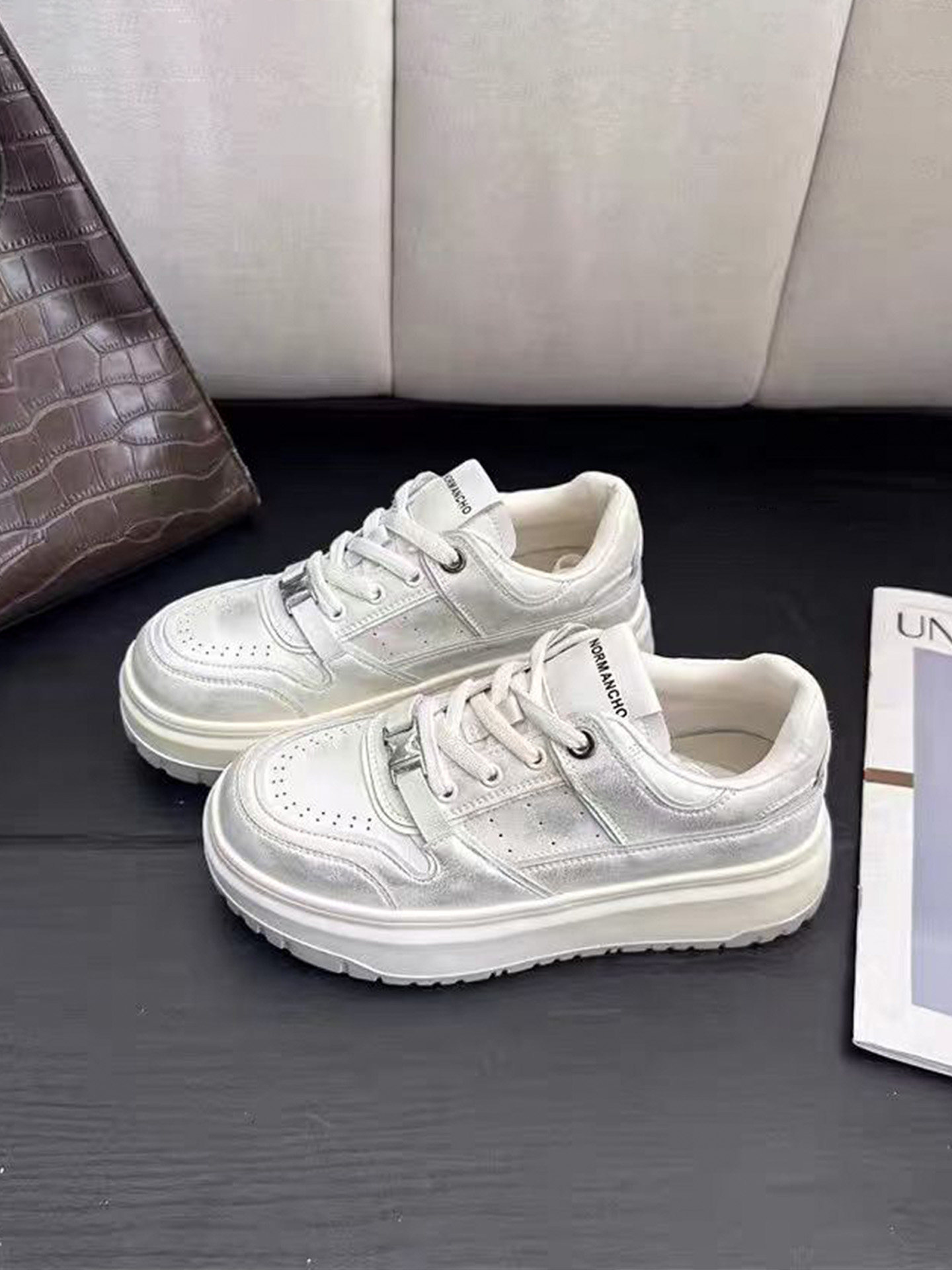 Hong Kong Genuine Leather Thick-Soled White Sneakers for Women 2026 Spring New Lace-Up Casual Sports Shoes Student Round-Toe Board Shoes