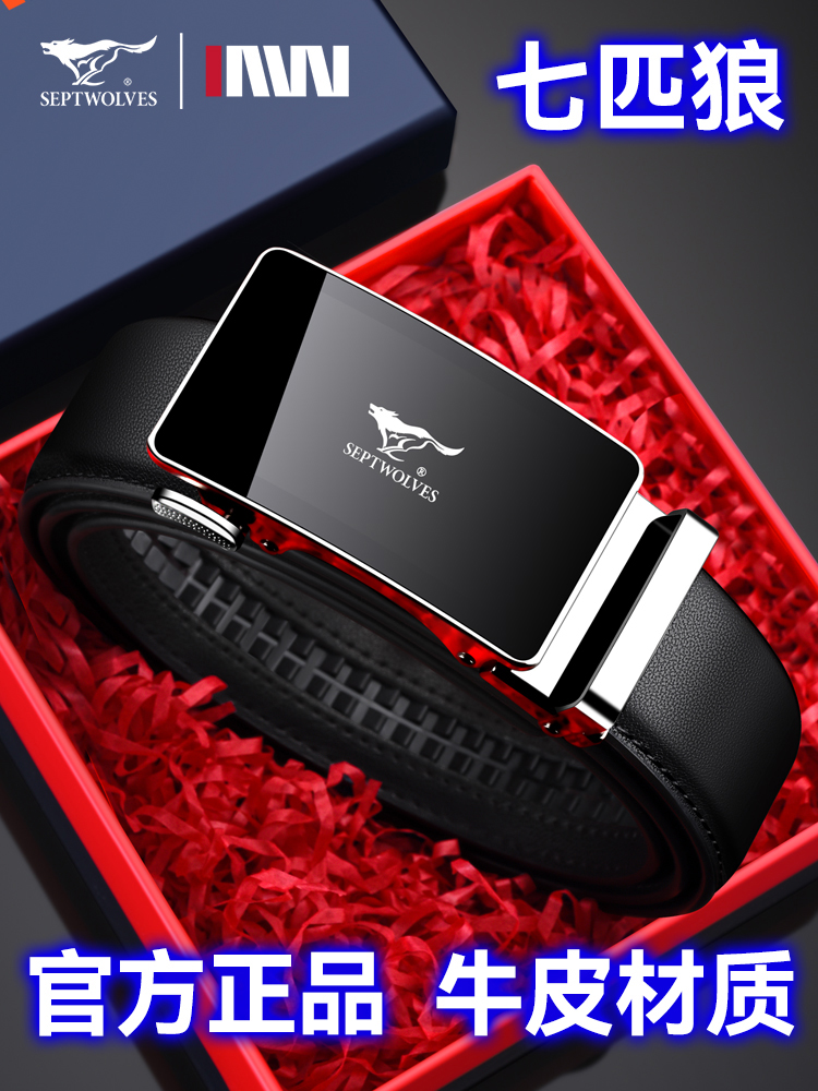 Septwolves Men's Belt Genuine Leather Automatic Buckle Belt 2025 New Model Men's Gift Business Belt Dad's Style