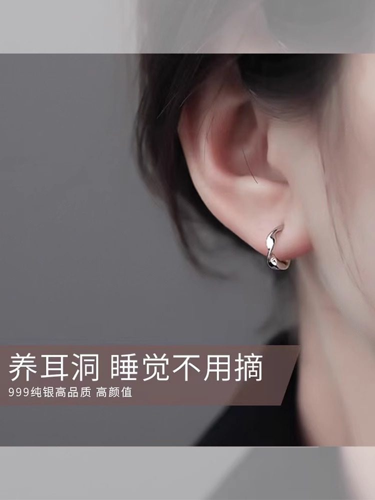 999 Pure Silver Ear Studs for Women, Simple Small Hoop Earrings, No Need to Remove While Sleeping, Ear Hoops, Ear Clips, Ear Cartilage Studs, Silver Ear Jewelry