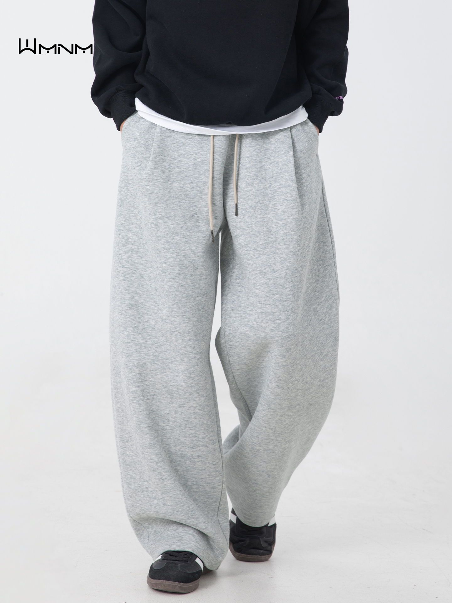 Pleated Gray Sweatpants for Men, Fleece-Lined, Heavy-Duty, Straight-Leg, Loose, Wide-Leg Pants, American-Style, Versatile Casual Long Pants