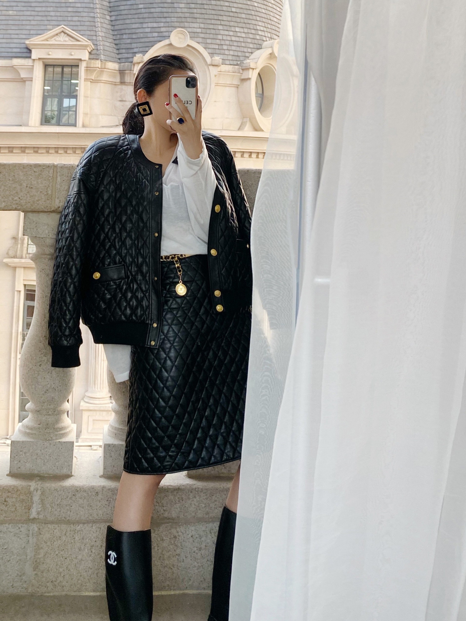 Thornsaura Commuting Simple Versatile Straight Slit Faux Suede Autumn and Winter Short Skirt for Women