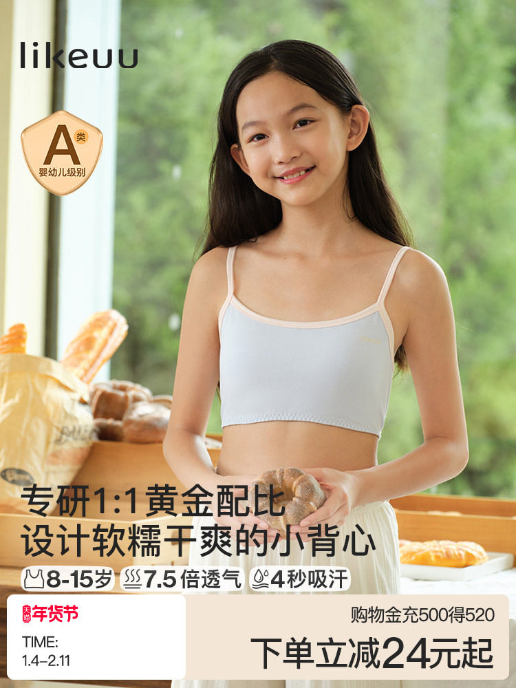 Girls' Vest for Developmental Stage, Elementary School Girls' Underwear, Pure Cotton, Class a Children's Underwear, Anti-Bump, First Stage, 9 Years Old