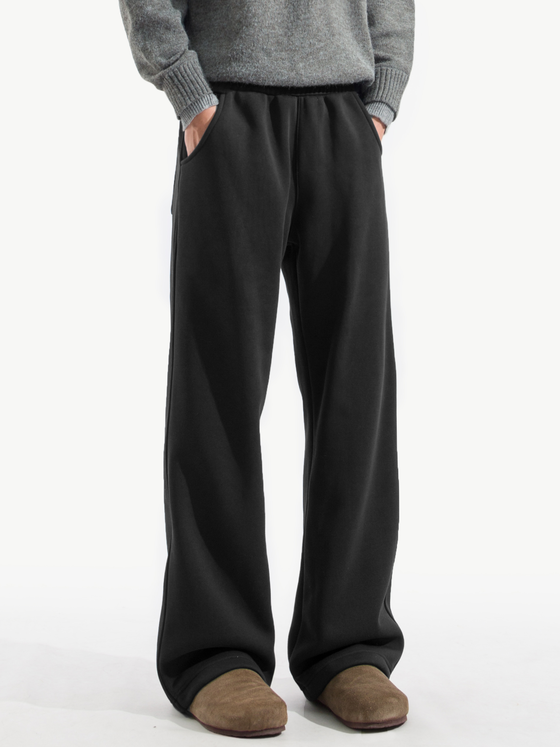 Xhh Winter New Black Sweatpants for Men, American Casual Sports Pants, Wide-Leg Flared Straight Pants, Japanese Style Loose Fit