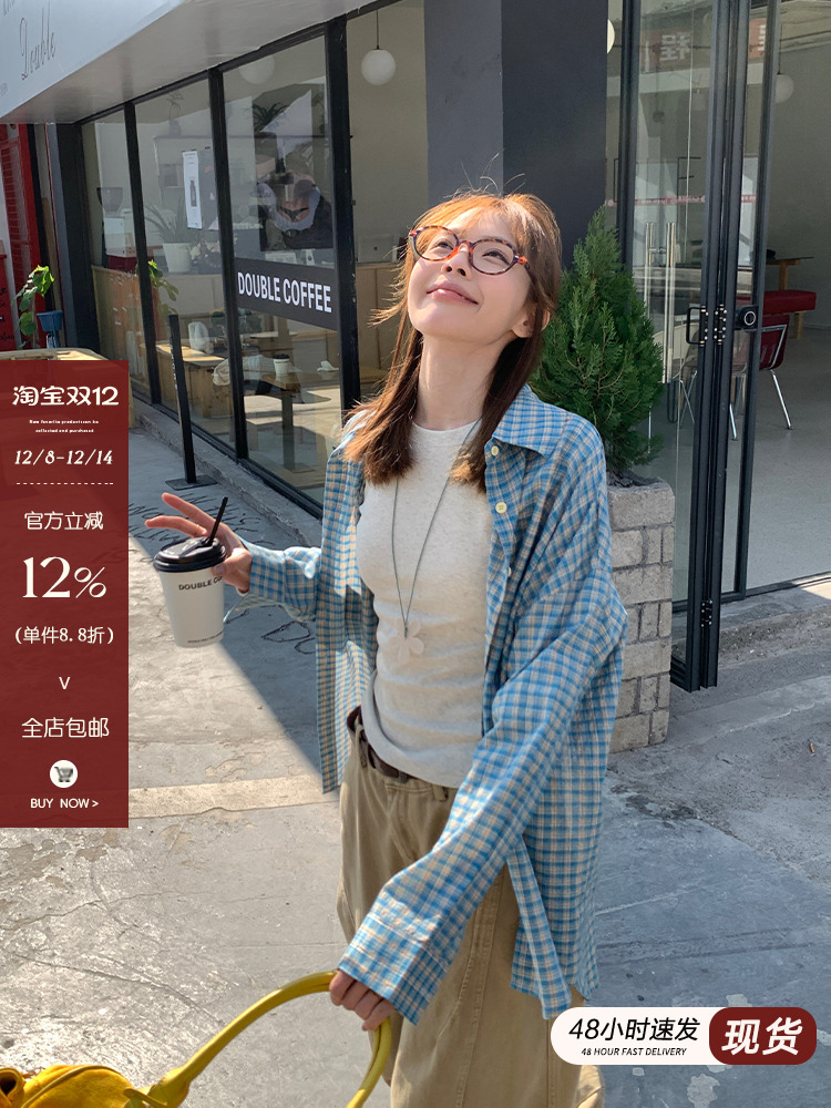 Song Zheng'En Blue Plaid Shirt Jacket for Women, Autumn Korean Style, Lazy, Loose, Fashionable, Versatile, Stylish Shirt Top