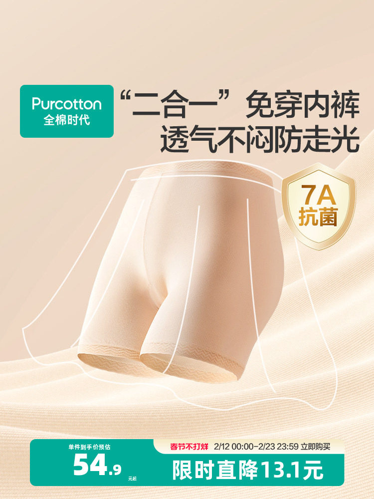Cotton Era Safety Shorts for Women, Anti-Exposure, Cool Cotton, Antibacterial, Non-Curling, Mid-Waist Boxer Briefs, New Style